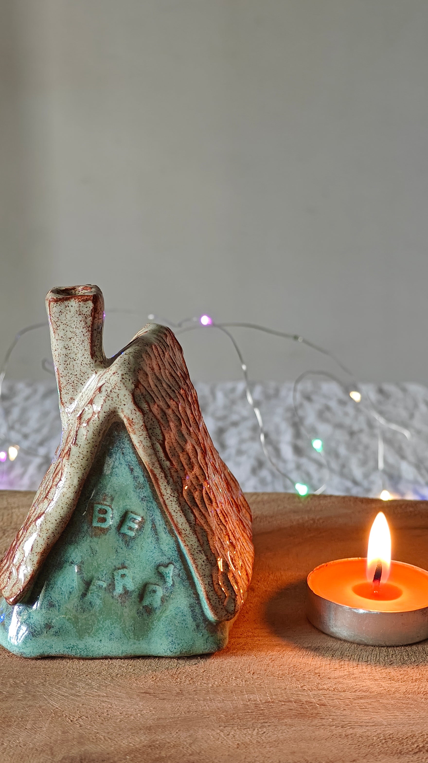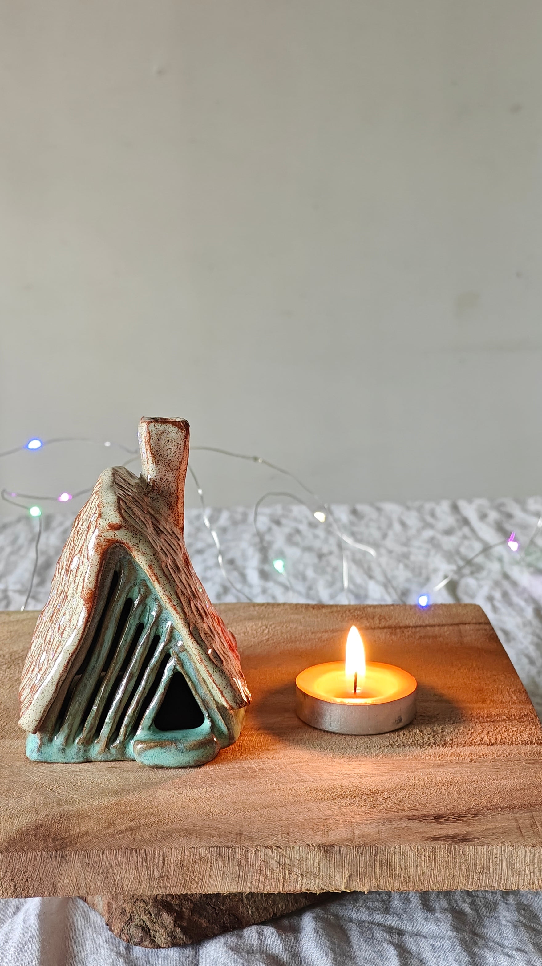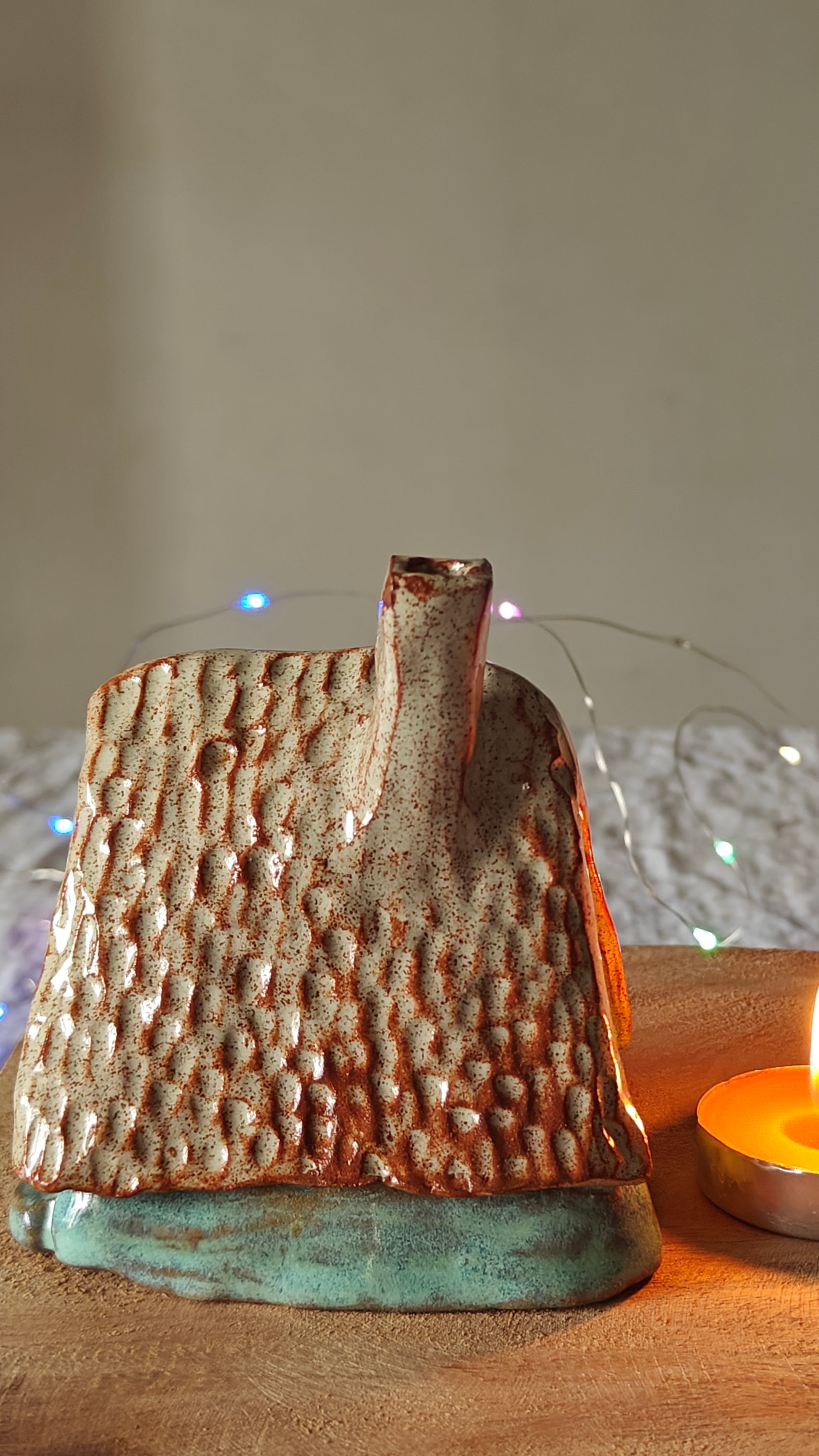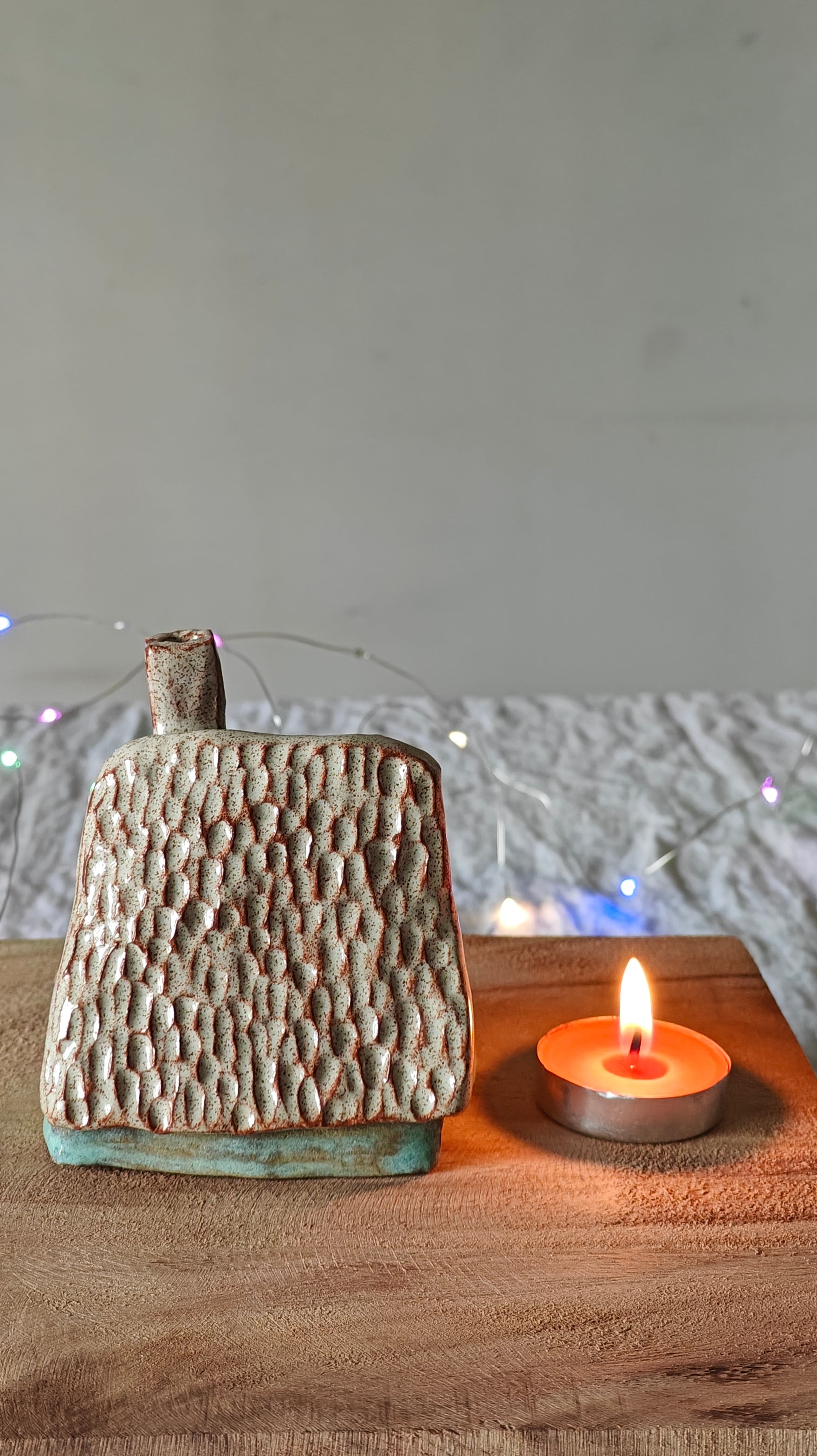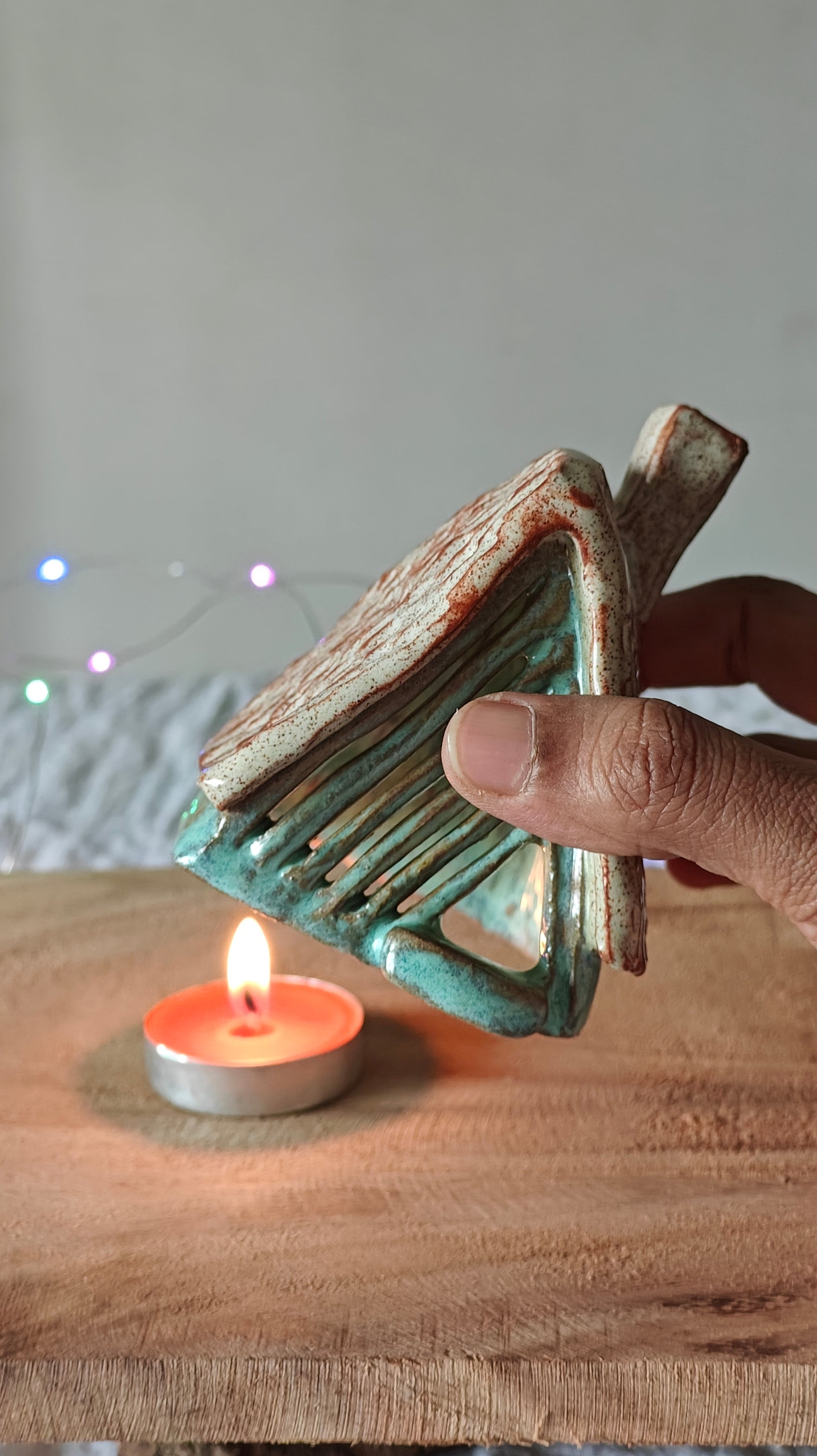 Be cautious when handling the ceramic piece with a lit tea light, as the heat from the tea light can transfer to the ceramic piece and potentially hurt your fingers. Consider using a battery-operated tea light to prevent any potential accidents.