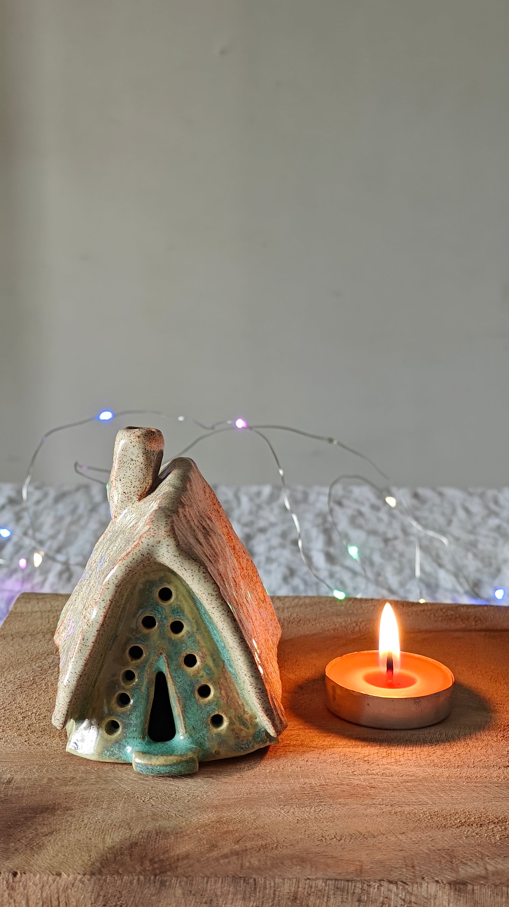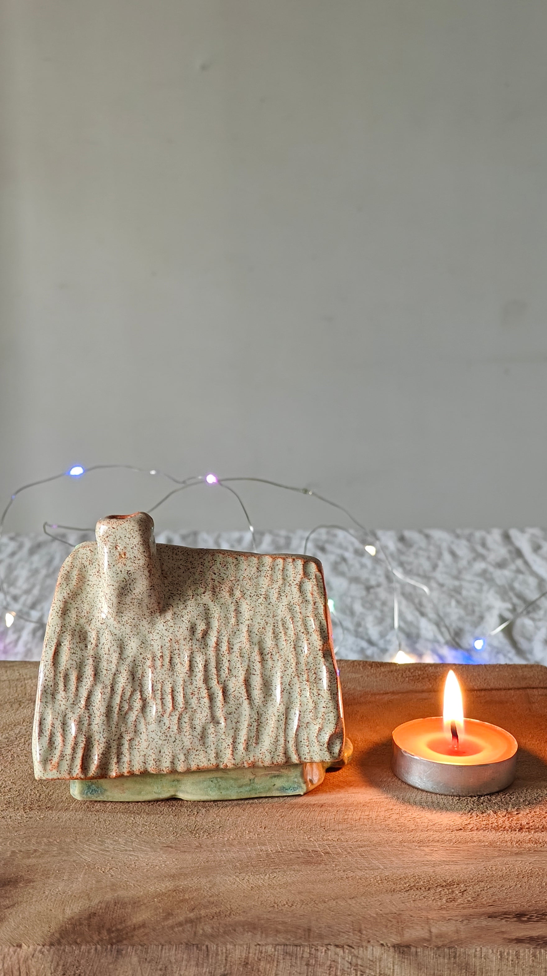 Be cautious when handling the ceramic piece with a lit tea light, as the heat from the tea light can transfer to the ceramic piece and potentially hurt your fingers. Consider using a battery-operated tea light to prevent any potential accidents.