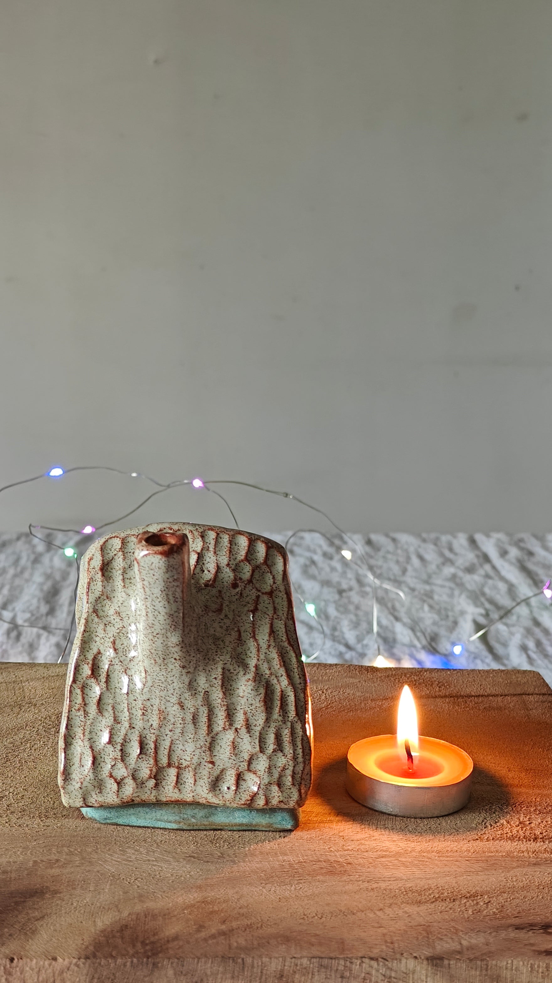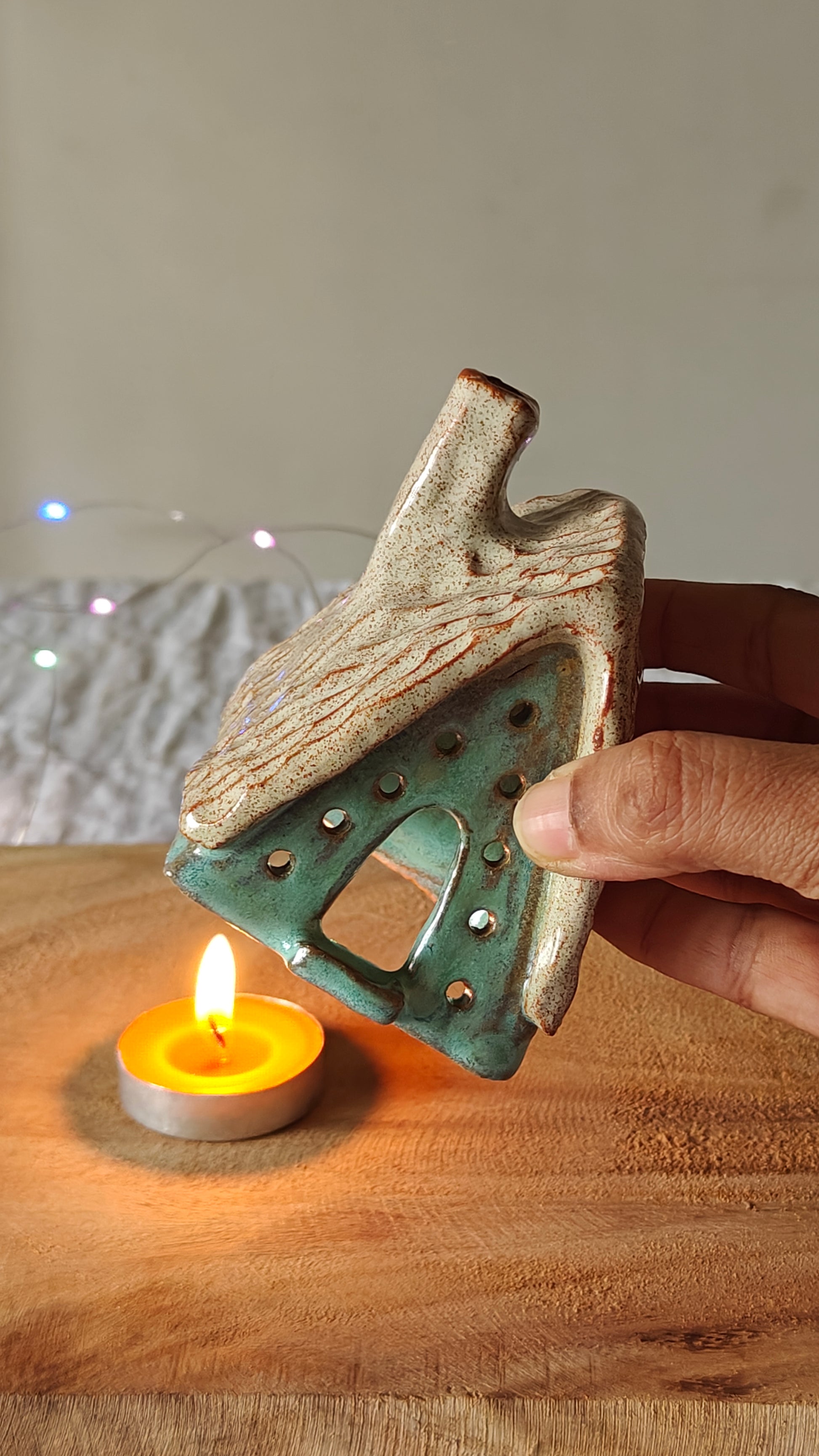 Be cautious when handling the ceramic piece with a lit tea light, as the heat from the tea light can transfer to the ceramic piece and potentially hurt your fingers. Consider using a battery-operated tea light to prevent any potential accidents.